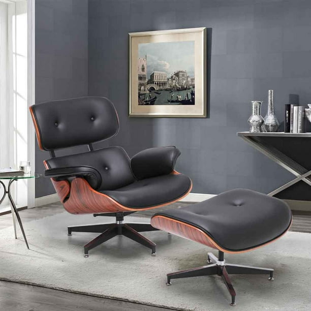 Okakopa Mid Century Modern Lounge Chair And Ottoman Indoor Living Room Recliner Classic Swivel Armchair Black Walmart Com